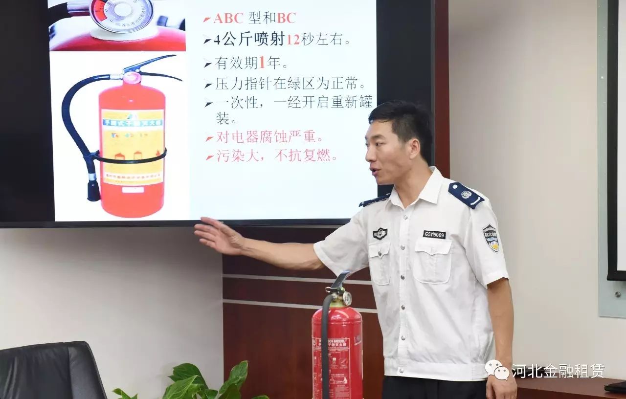 正值盛夏,也是火患易發(fā)時(shí)節(jié)。為進(jìn)一步提高消防安全管理水平,普及消防法規(guī)和消防知識(shí)。近日,河北省金融租賃有限公司邀請(qǐng)石家莊防火知識(shí)宣傳中心在公司總部舉辦了一場(chǎng)主題消防安全知識(shí)講座。