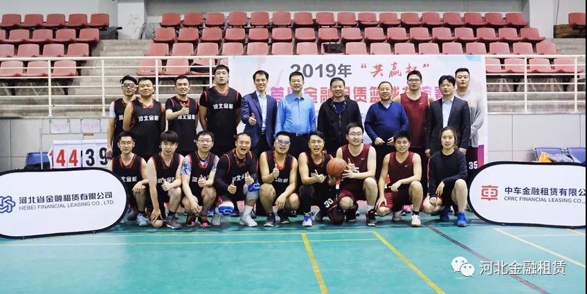 河北金租董事長徐敏俊(后排右五)、監事長肖剛(后排右六)、副總裁李永德(后排右七)、工會主席石拴江(后排右四)等與籃球隊合影。