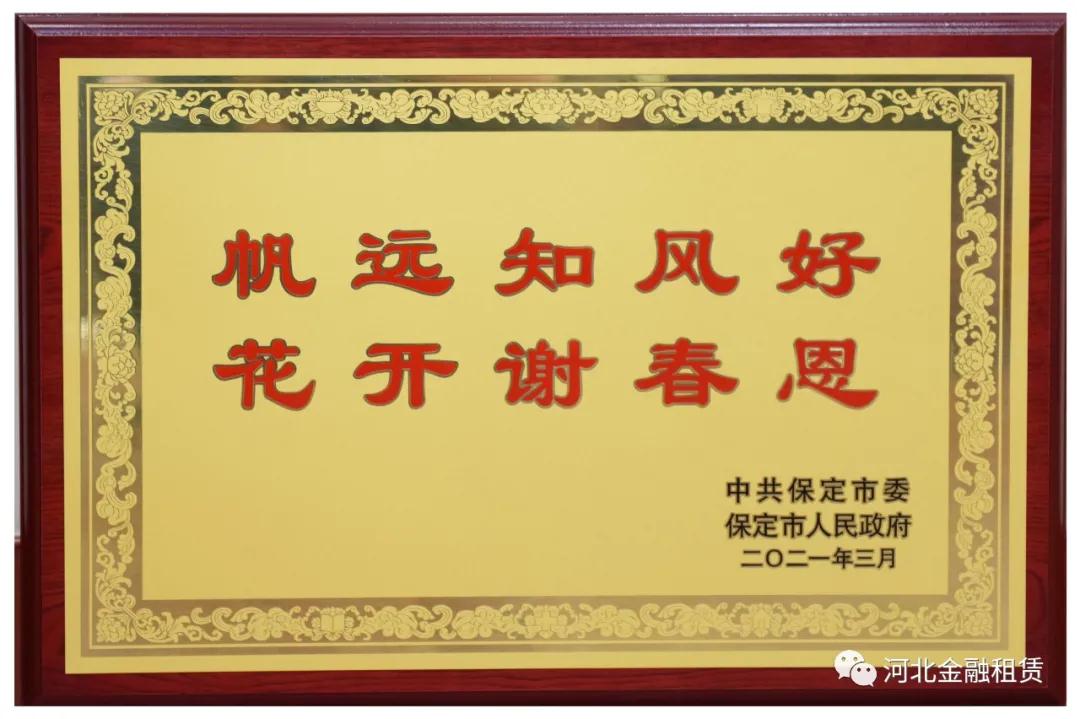 保定市委、市政府在信中寫道:“值此脫貧攻堅取得全面勝利之際,保定市委、市政府代表全市1000萬人民向一直以來關心支持保定經濟發展并在保定脫貧攻堅事業中作出突出貢獻的河北省金融租賃有限公司,表示衷心感謝和崇高敬意……”